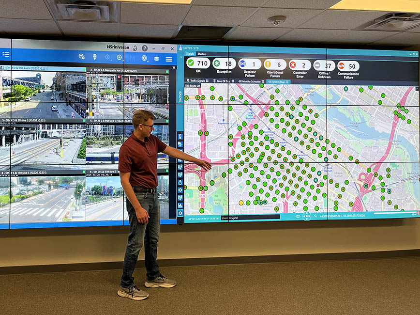 We monitor city traffic, maintain traffic signals and lights and monitor cameras.